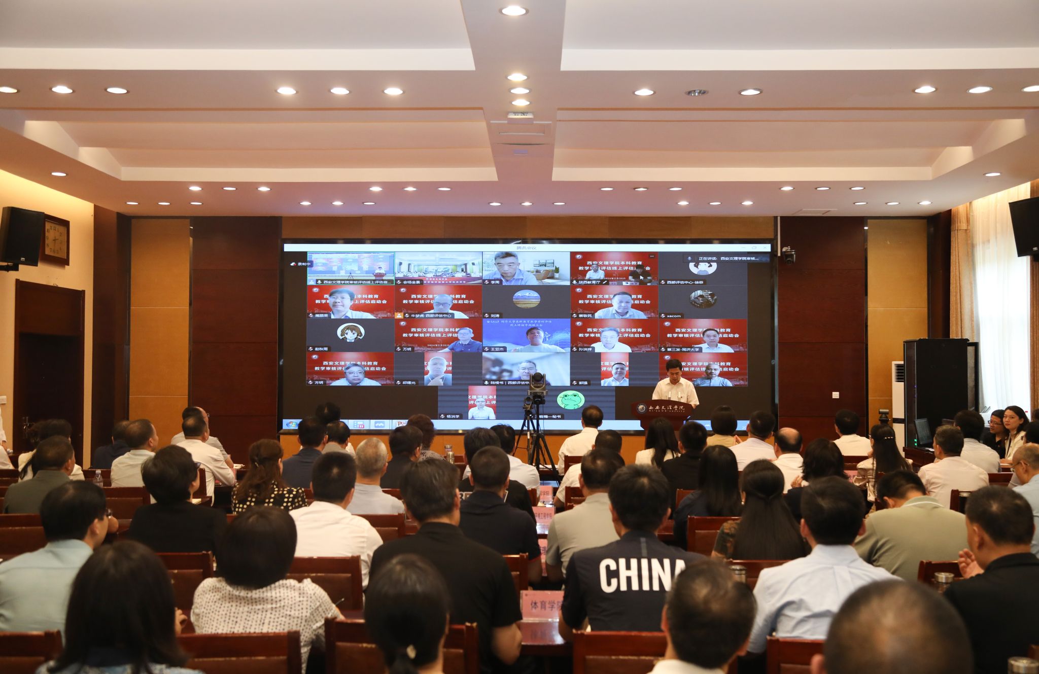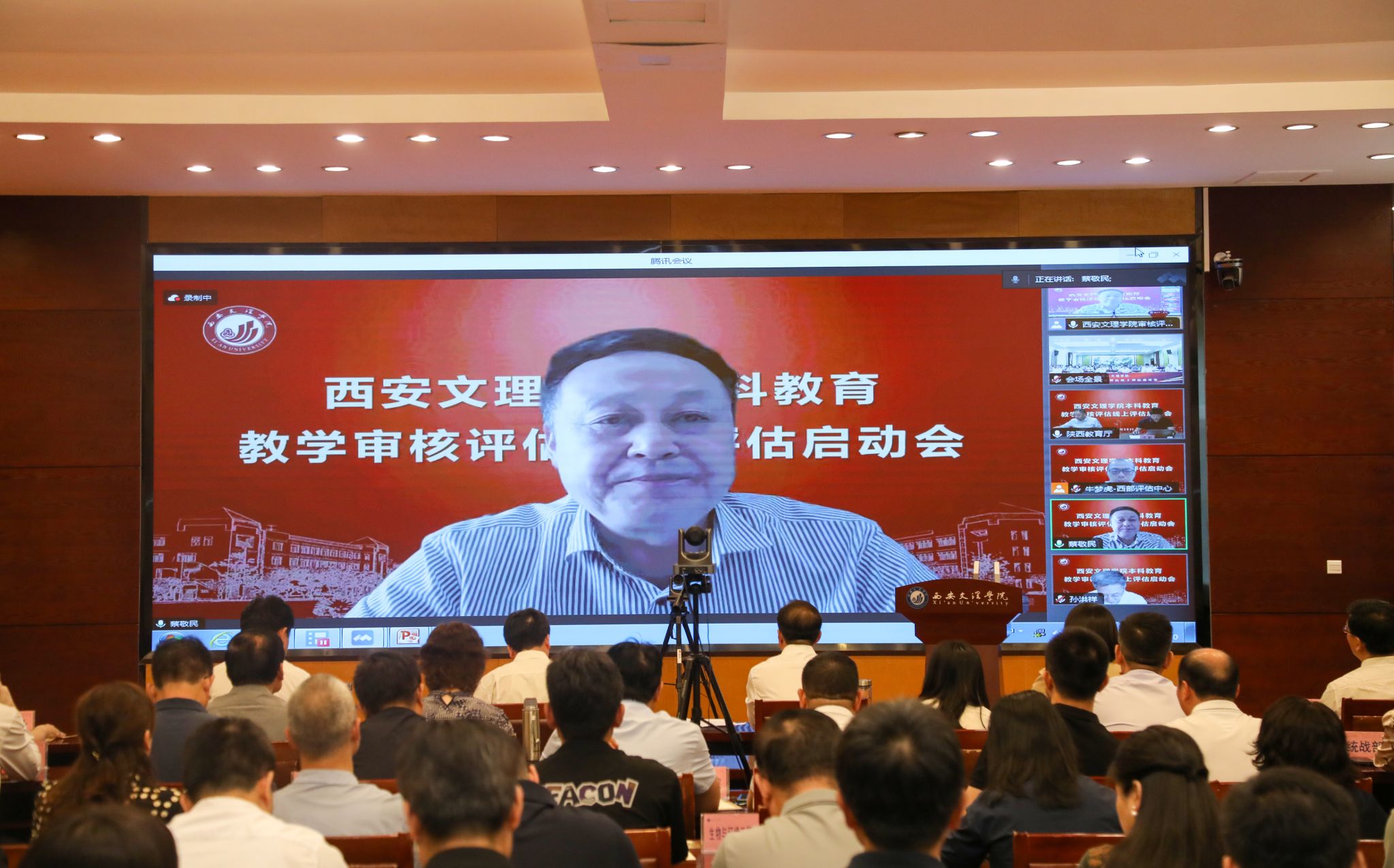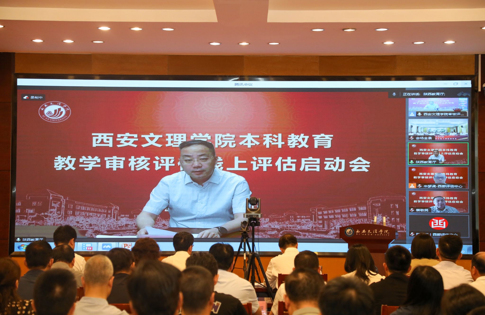5月20日下午,今年会jinnian官网召开本科教育教学审核评估线上评估启动会。教育部审核评估专家组组长、安徽大学党委书记蔡敬民教授,副组长、北京邮电大学副校长孙洪祥教授等15位专家组成员及项目管理员、秘书,省教育厅高教处处长高强、副处长杨鹏,中国西部高等教育评估中心主任陆根书、副主任徐菲出席线上会议。