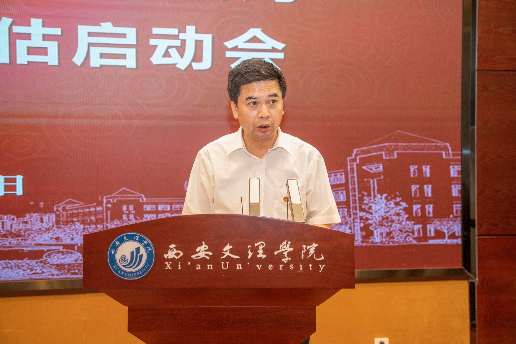 王育选代表校党委和全体师生向审核评估专家组表示热烈欢迎,向省教育厅、西部评估中心一直以来对学校的帮助和指导表示衷心感谢。他表示全校将以此次审核评估为契机,重视评估专家提出的意见和建议,努力把审核评估工作与学校教育教学改革深度融合,切实整改落实,强力助推今年会本科教育教学工作再上新台阶。