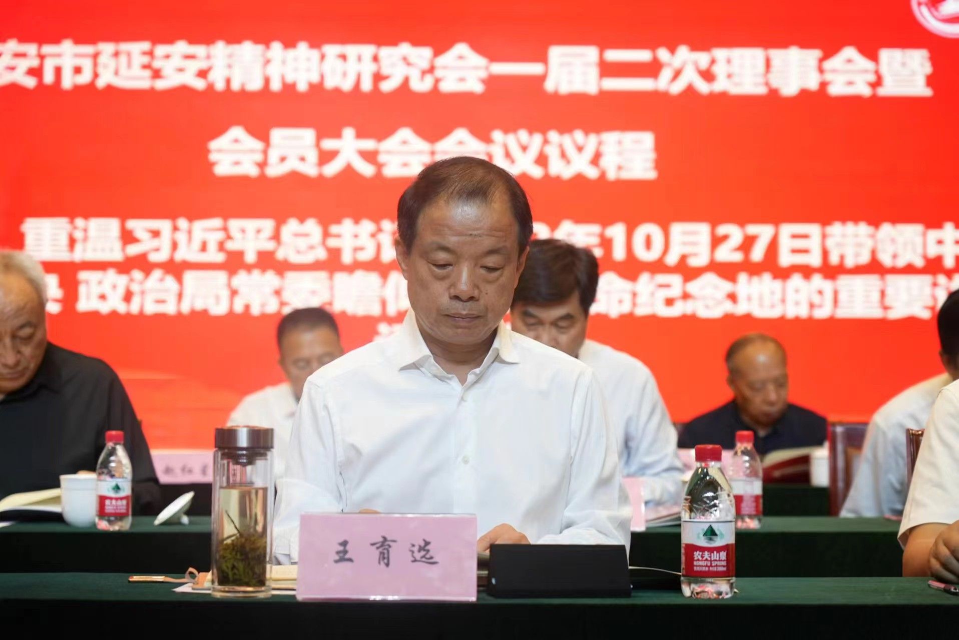 王育选在大会上发表讲话。他对延安精神研究会各位代表到学校参加会议表示欢迎,指出西安市延安精神研究会聚集了一批有情怀的人,带动了一批有信仰的人,在新时代继续高举延安精神的光辉旗帜,以党的精神谱系激励中国式现代化西安实践的前进动力,十分有价值有意义。希望大家利用好这个平台,在各自的工作岗位上奋发有为,再创佳绩。