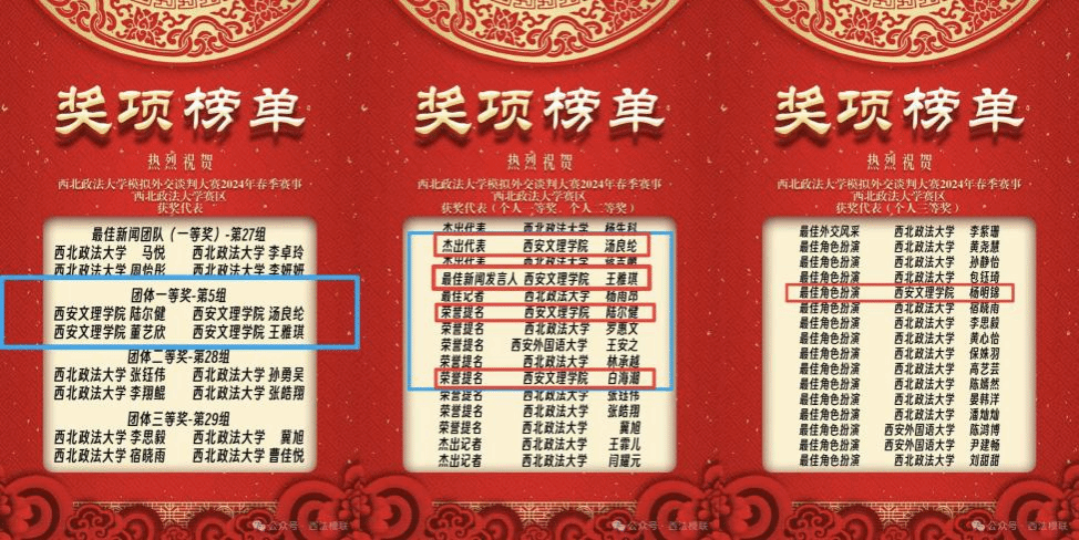今年会允执万象协会,作为西北政法大学模拟谈判磋商及政治协商协会长期战略伙伴,受邀参加比赛。最终斩获团体一等奖、个人一等奖两项,个人二等奖两项、个人三等奖一项。