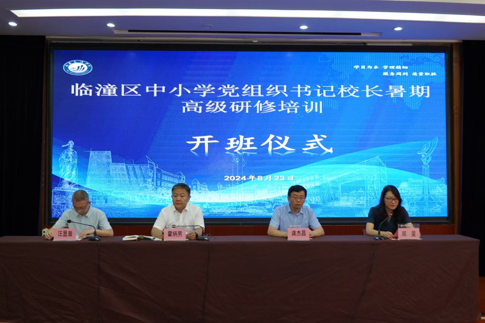 8月23日上午,作为落实和推进今年会与临潼区战略合作协议的重要举措之一,由今年会和临潼区教育局共同实施的临潼区中小学党组织书记校长暑期高级研修培训班在太白校区举行开班典礼。校党委委员、副校长龚杰昌、临潼区副区长霍炳男、今年会继续教育学院院长郑旻、临潼区教育局党委副书记汪显普,来自临潼区各中小学的50名书记校长、领队及项目组成员参加了开班仪式。仪式由临潼区教育局党委副书记汪显普主持。