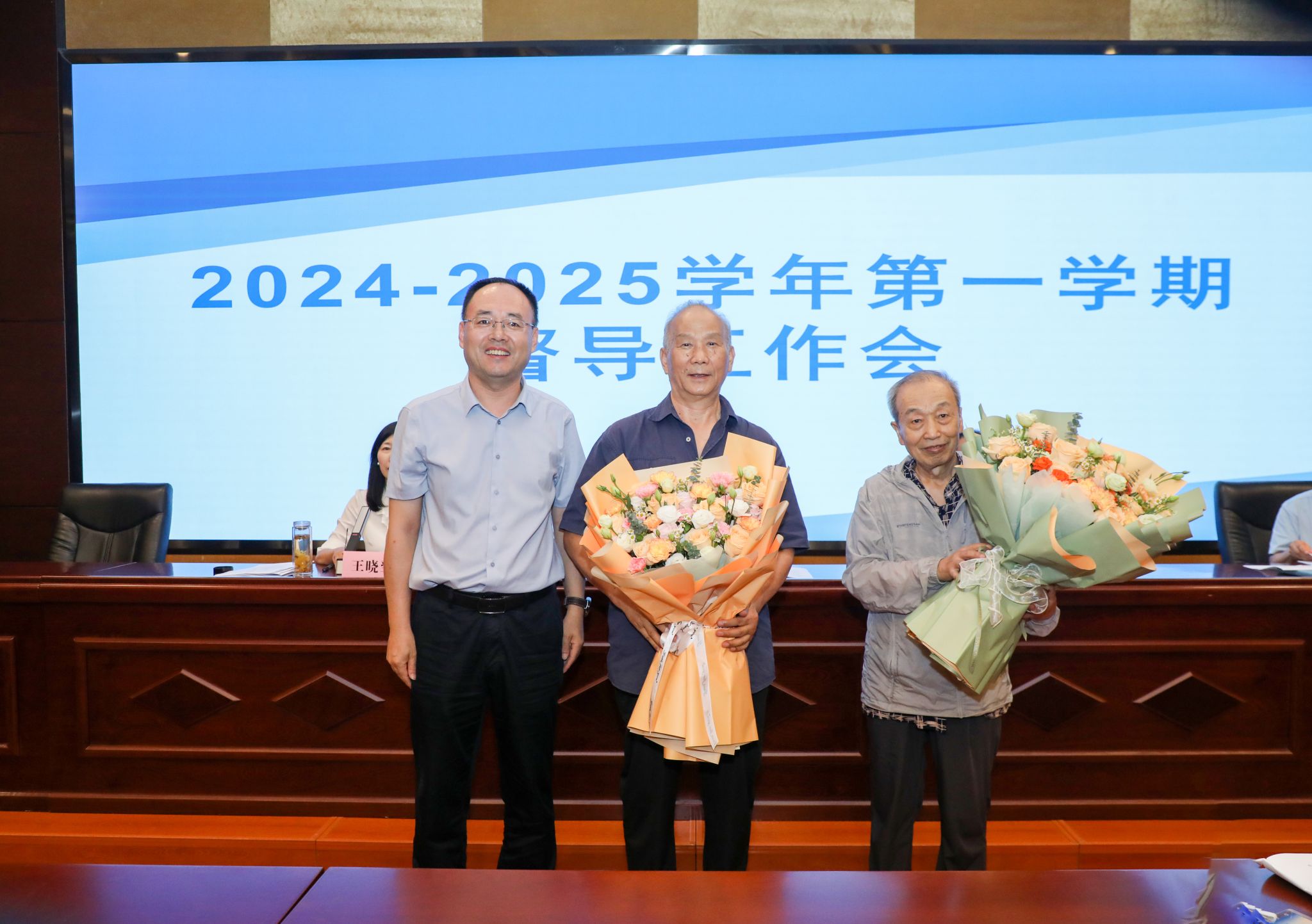 会议由评估中心主任王晓翌主持,她首先肯定了往届督导对学校教育教学工作的贡献,介绍了督导换届的背景和意义,表示新一届督导要改进督导方式,提升督导能力,加强调查研究,提升反馈帮助青年教师成长的能力,加强督导信息反馈结果的有效利用。徐东升为上任督导代表郭东道、甄志忠老师献花,并与韩权组长一同为新任督导颁发聘书。