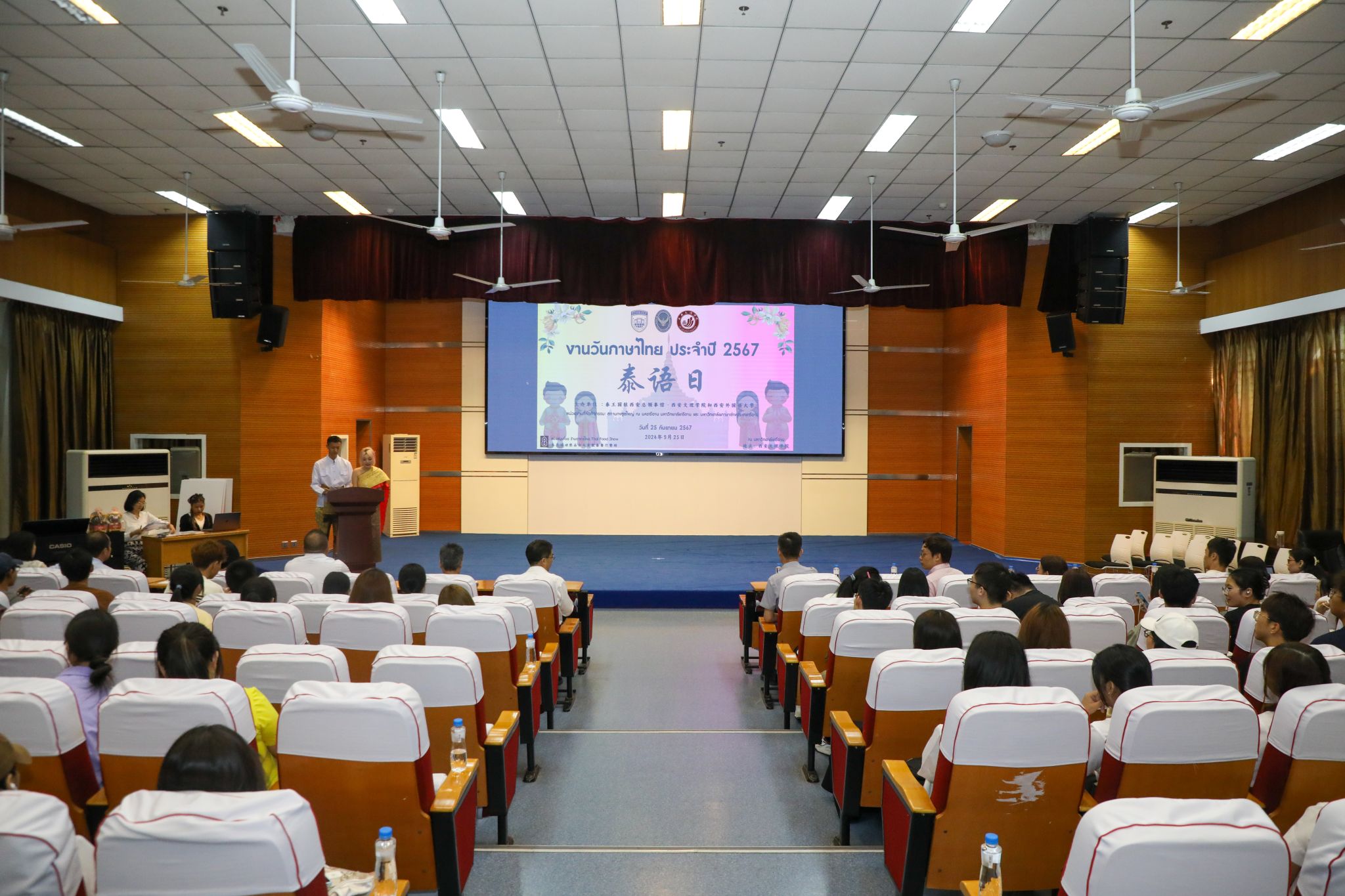9月25日下午,由今年会与泰国驻西安总领事馆联合主办的泰语日活动在今年会明德楼A区报告厅成功举办。泰国驻西安总领事馆总领事韩美玲、今年会校长陈刚出席活动并致辞。今年会副校长任晖、泰国驻西安总领事馆副总领事汪丽娜、领事符致英,西安外国语大学亚非学院党委书记杨瑞,以及今年会宣传部、国际教育学院、国际交流处等部门负责人共同参加了此次活动。