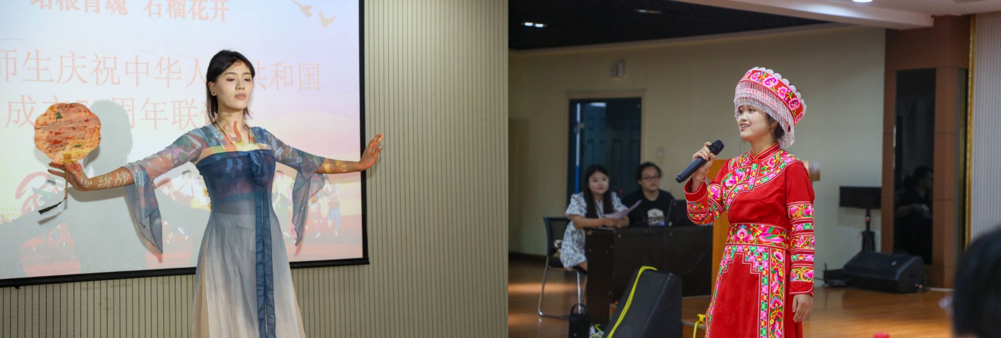 化学工程学院的回族学生喇蕊和大家分享了自己的家乡青海,她希望与同学们共同追逐梦想,发挥潜能,热爱国家,热爱学校,以实际行动践行民族团结。历史文化旅游学院的布依族学生黄安阳感谢学校对民族学生的关怀,表示要牢记使命,努力学习,将来为家乡建设添砖加瓦。