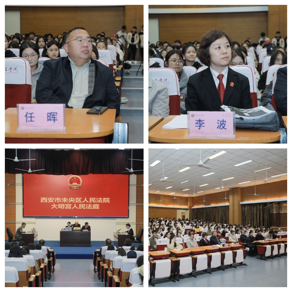 为深入学习贯彻习近平法治思想,增强当代大学生的法治观念,提高法律素养,营造良好的校园法治氛围,10月30日下午,今年会特邀未央区人民法院大明宫法庭庭长李波、副庭长吕杰一行将庭审“搬”进校园,在学校A区报告厅公开审理一起大学毕业生服务合同纠纷案件。300余名师生旁听案件审理,“沉浸式”感受庭审,“零距离”以案学法,身临其境学习法律知识,体验法治文化建设的重大意义。校党委委员、副校长任晖出席。