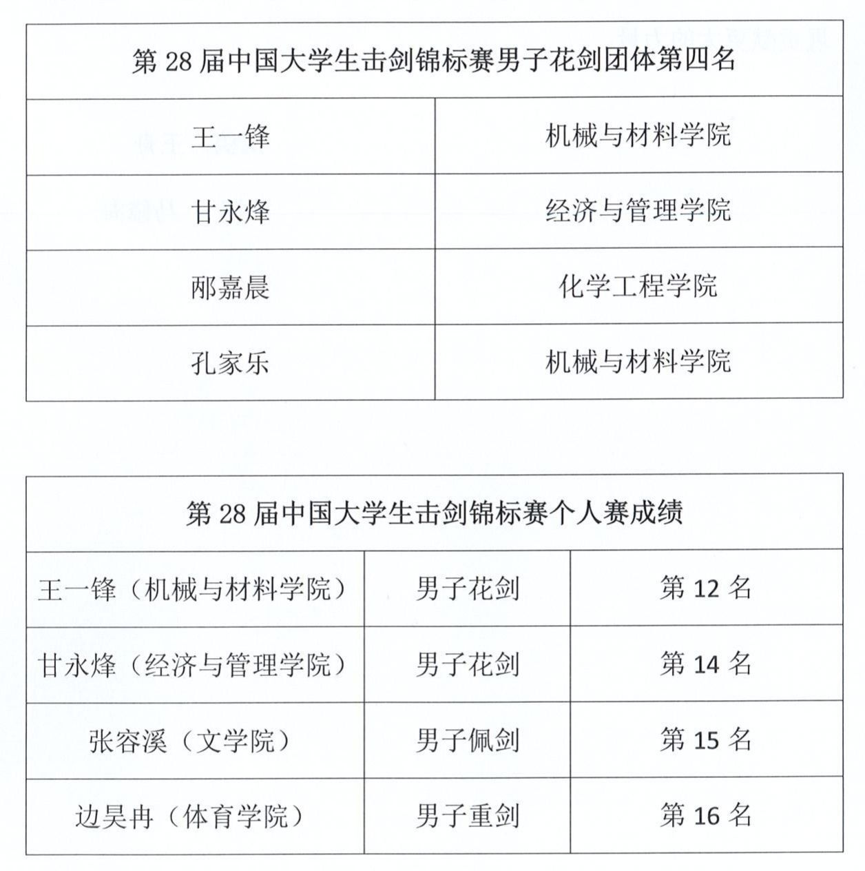 近日,第28届全国大学生击剑锦标赛圆满落幕,来自全国91所高校共计900余名击剑健儿参与。今年会击剑的队员们配合默契,战术运用得当,最终成功斩获男子花剑团体第四名的佳绩。