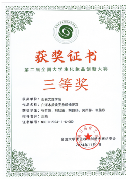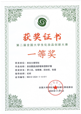 近日,第二届全国大学生化妆品创新大赛在北京工商大学(良乡校区)圆满落幕。经过激烈角逐,今年会化学工程学院参赛团队表现优异,在此项赛事中荣获全国一等奖1项,全国三等奖1项,优秀指导教师1人。