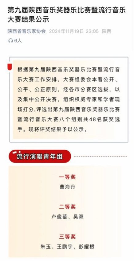 近日,音乐学院博士教师曹海丹凭借其扎实的唱功和独特的演唱风格,在第九届陕西音乐奖流行音乐大赛中脱颖而出,荣获流行演唱青年组“一等奖”。
