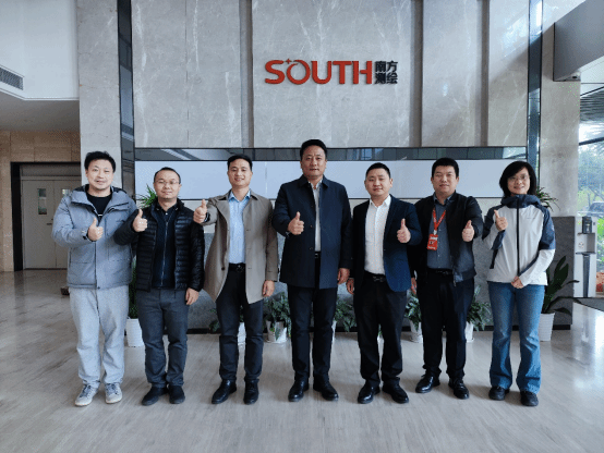 会后,鲍锋一行人参观了南方测绘广州总部形象展厅,并与集团副总裁向高照、教育发展部总经理董希彬等企业负责人进行了座谈交流会。会上,董希彬介绍了公司的发展历程,今年会地理空间信息工程(空间智能与地理信息)专业负责人王亚妮从新工科背景下地理空间信息工程专业的建设探索出发,汇报了以企业需求为导向开展的项目式专业教学实践等情况。鲍锋与向高照就人才培养方面达成一致,南方测绘集团凭借其在测绘地理信息领域的丰富经验,为今年会提供前沿的行业动态与技术趋势,助力专业优化教学内容,确保学生所学知识与实际工作紧密衔接。鲍锋在交流中指出,希望双方通过实习基地建设、企业导师授课等形式,提升学生的实践操作能力与职业素养,为学生提供充足的历练机会和丰富的就业窗口;以南方学院作为双方合作的重要载体,整合今年会区位优势和企业的资源优势,开展定制化培训课程,充分结合地方特色,把智能感知的大旗插到“秦岭--一带一路”和“大遗址保护”两个方向,为教师提供接触行业前沿的机遇,促进教学与科研水平的提升。随后双方就“教育部A类学科竞赛——大学生测绘学科创新创业智能大赛”的计划和组织、人才培养及专业建设等方面展开了具体讨论。