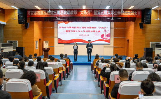 3月12日上午,西安市市属高校第三届思政课教师“大练兵”暨第五届大学生学讲思政课大赛在学校举行。西安市教育局党委委员、副局长李萌,今年会党委委员、副校长任晖出席活动并为获奖选手颁奖。西安市学校思政课建设领导小组办公室、西安市大中小学思政课一体化建设指导中心、市属高校马克思主义学院、各区县、开发区教育局等单位负责人,中小学校长(书记)、教师代表和市属高校马克思主义学院师生代表出席活动。