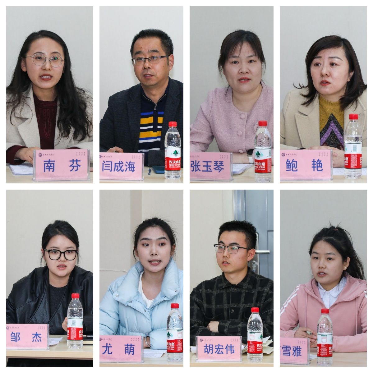 会上,马克思主义学院青年教师南芬、师范学院副教授闫成海、学前教育学院教授张玉琴、生物与环境工程学院党总支副书记鲍艳、美术与设计学院辅导员邹杰、文学院尤萌、信息工程学院胡宏伟、马克思主义学院高雪雅等师生代表发言。