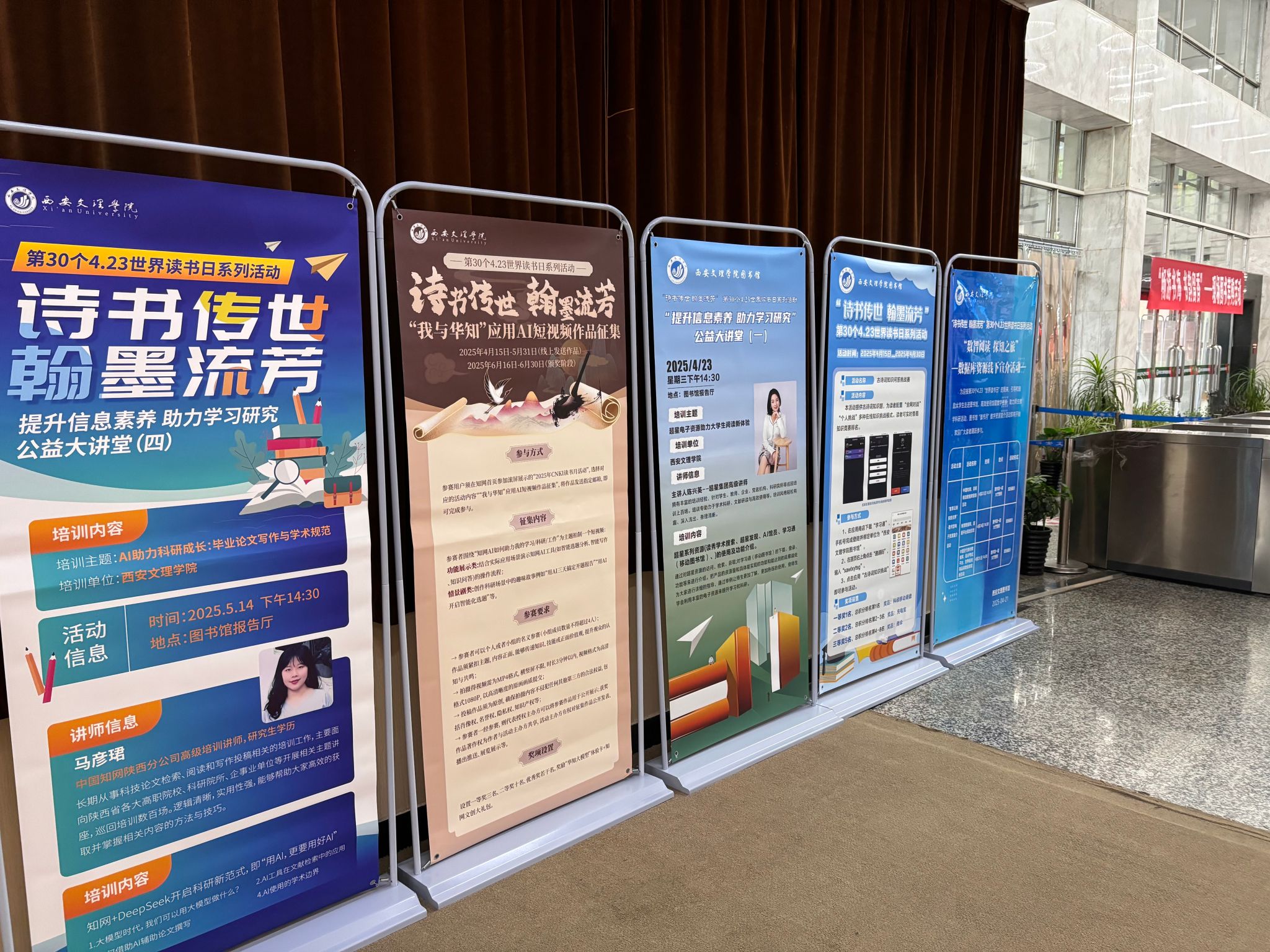 为贯彻落实《教育强国建设规划纲要(2024一2035年)》“深化全民阅读”要求,充分发挥图书馆在学校人才培养、科学研究、社会服务和文化传承创新中的作用,在“世界读书日”来临之际,图书馆策划开展了“诗书传世 翰墨流芳”——第30个4·23世界读书日系列活动。