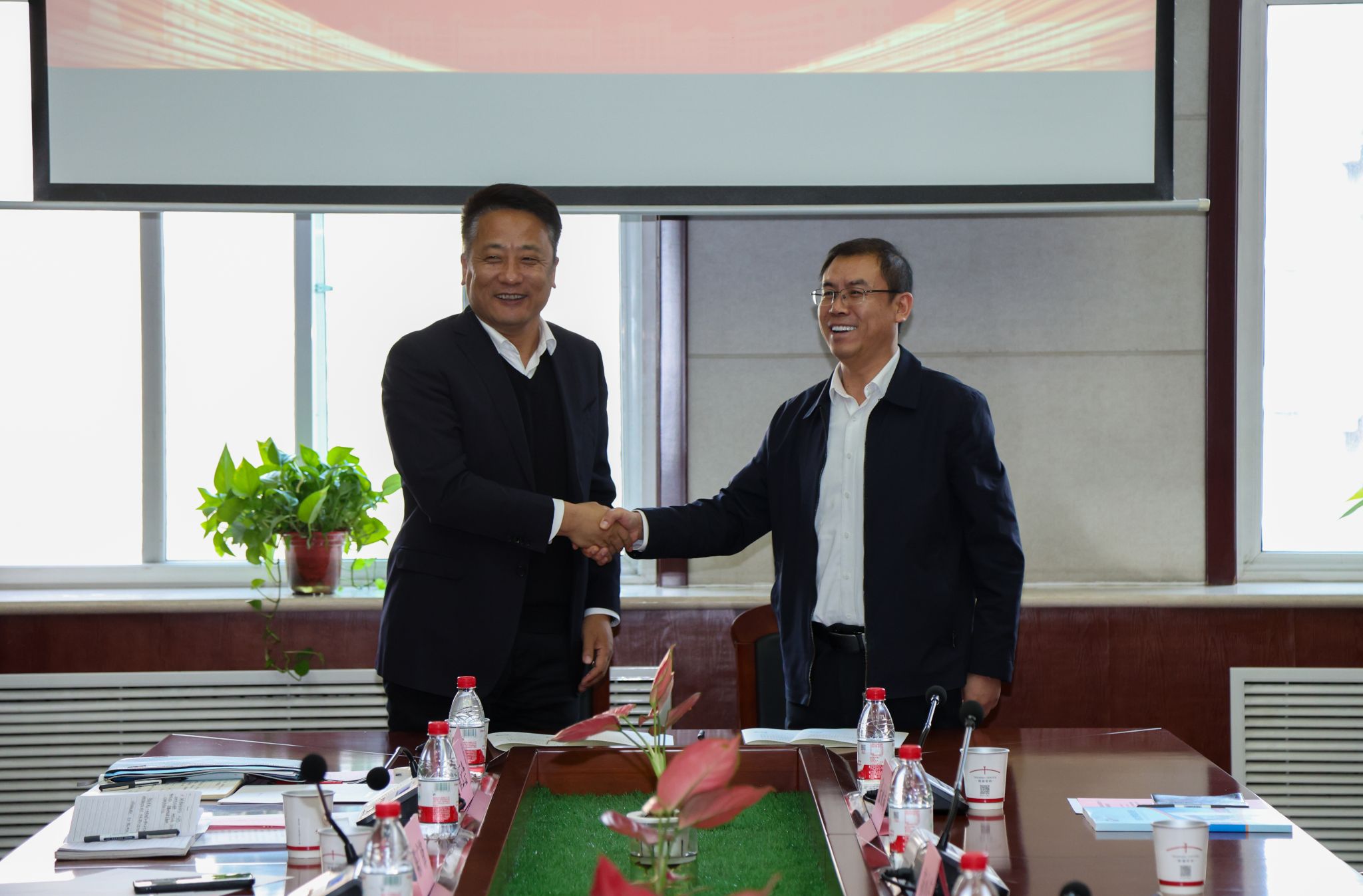 在与会人员的共同见证下,王育选与尚文隆互赠纪念礼品,鲍锋与尚文隆代表双方签署战略合作框架协议。