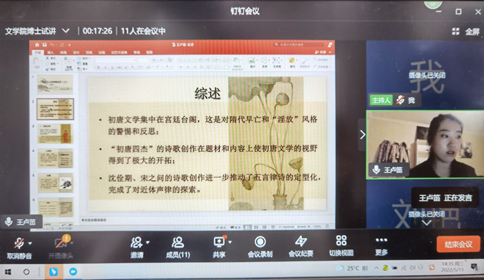 5月11日下午,文学院2022年春季博士人才引进试讲通过钉钉会议方式举行。院长郝延军,党总支书记吴勃,学院教学委员会、督导委员会全体委员出席,副院长马娜主持试讲。 马娜介绍了2022年学院人才引进计划,参加此次试...