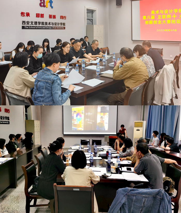 5月18日下午,美术与设计学院召开2022年第八届中国国际“互联网+”大学生创新创业大赛申报项目院级评审会。学院教学委员会全体成员和往届获得省级金、银、铜奖的指导教师参加评审。会议由教学副院长巩珊珊主持。 202...