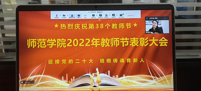 9月9日上午,师范学院通过腾讯会议组织全体教职工在线举行庆祝第38个教师节表彰活动,活动由师范学院副院长向华主持。 表彰会上,师范学院副院长马伟宣读了学院2022年荣获优秀教师、先进教育工作者、优秀辅导员、先进...