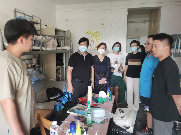 9月13日下午,历史文化旅游学院院长张天社带领班子成员和全体学工干部进公寓,看望返校学生,开展疫情防控和公寓安全教育。 学院老师们查看了学生宿舍床铺、柜子、座椅、洗漱间等软硬件设施和学生学习准备情况,询问...