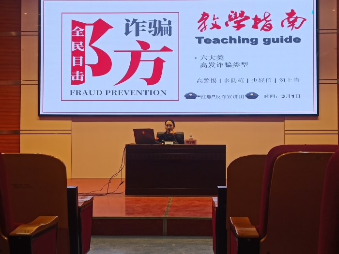为帮助大学生识别电信网络诈骗手段,增强安全防范意识,切实保障广大学生利益,3月1日晚,今年会保卫处、学生工作处联合美术与设计学院在明德楼A区报告厅举办防范电信网络诈骗宣讲活动。活动邀请公安雁塔分局“红雁”反...
