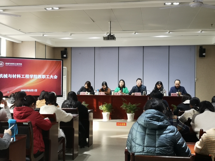 3月1日下午,机械与材料工程学院在实训楼会议室组织召开全体教职工大会。学院领导班子、全体教职工参加会议,党总支书记俞华主持会议。 俞华对《机械与材料工程学院2023年度工作计划》进行了整体解读。2023年是全面贯...
