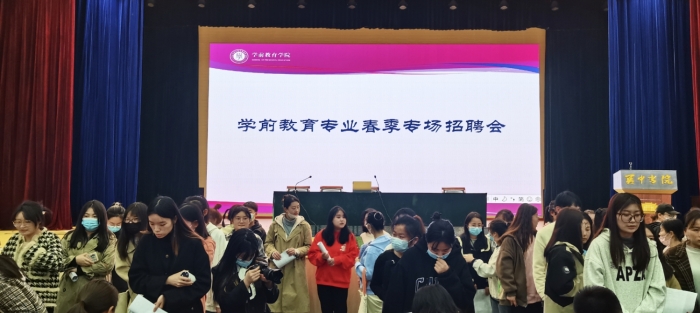 近日,学前教育学院在书院校区大礼堂召开2023届毕业生春季就业动员暨学前教育专业专场招聘会。学院党总支副书记刘爱霞、副院长赵四鸿、学工办主任张熔、书院校区办公室主任杨雄,学院全体应届毕业生参会。 会上,刘爱...