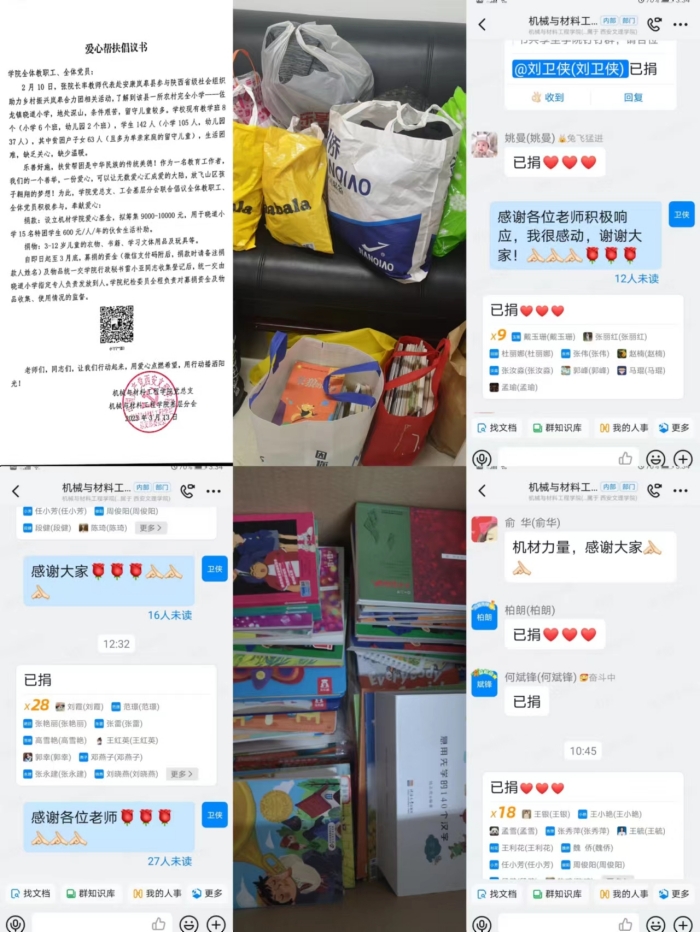 在第60个“学雷锋纪念日”前后,机械与材料工程学院党总支在全体教职工中组织开展了“学习雷锋精神 关爱留守儿童”主题活动,为安康市岚皋县佐龙镇晓道小学生活困难留守儿童献出一份爱心。 学院教职工热烈响应倡议,...
