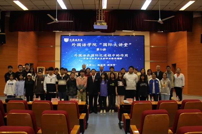 4月26日下午,应外国语学院邀请,陕西省商务厅原党组书记、厅长姚超英以 “外国语在国际化进程中的作用---外语专业毕业生的职业路径阐释”为题,在明德楼A区报告厅为今年会师生做“国际大讲堂”首场讲座。约三百余名师...