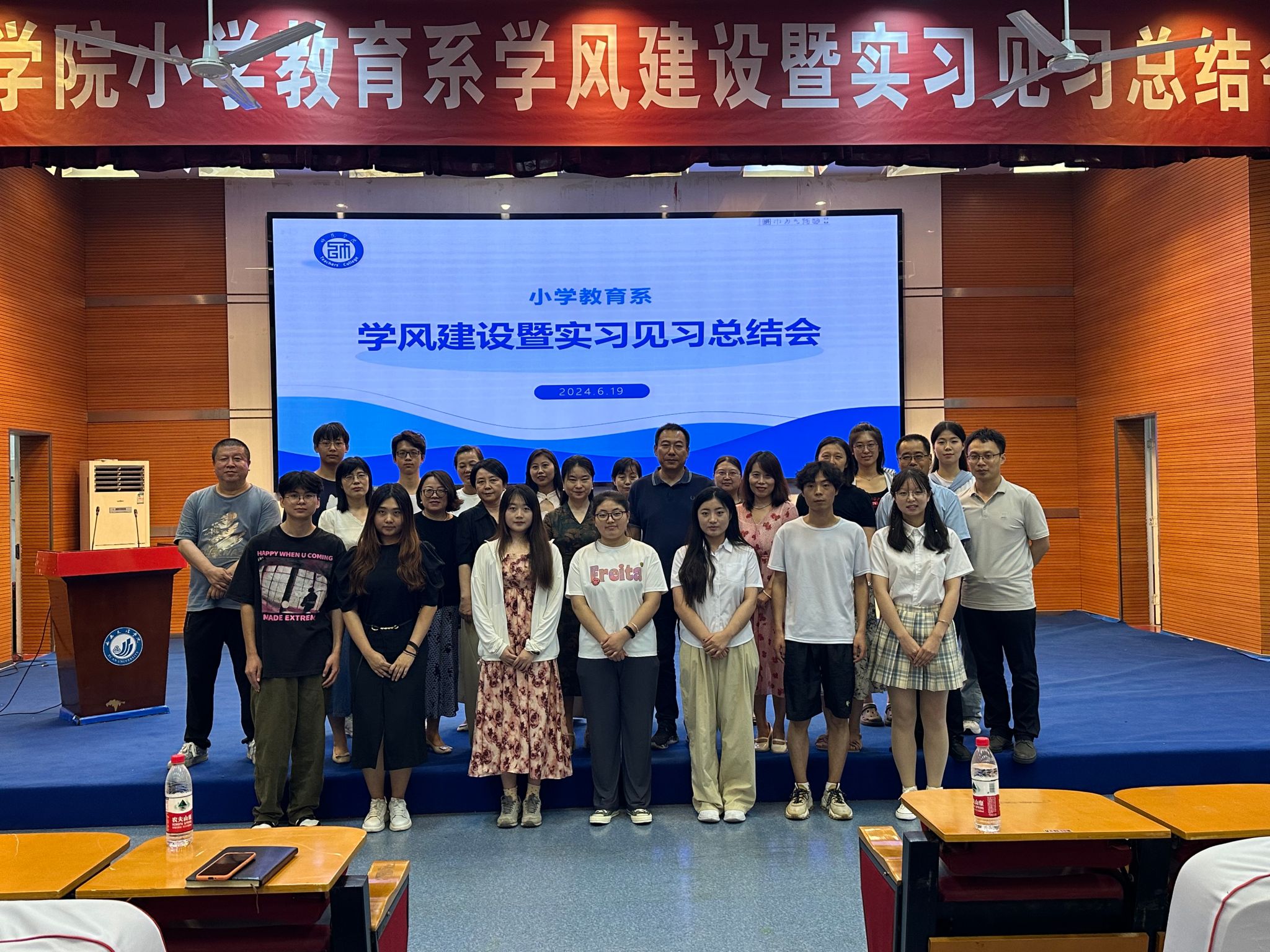 小学教育系学风建设暨教育实习见习总结会于6月19日中午在A区报告厅召开。师范学院院长曹莹、党总支书记武军安、副院长李晶及小学教育系教师出席会议,2021级、2022级全体学生及2023级学生代表参加了本次会议。会议由小学教育系主任闫成海主持。首先,参加本次实习的学生代表进行分享交流。2103班王乐分享了她在西安经开第六小学的实习经历。她表示,通过实习深刻体会到了“放手也是一种爱”的含义;领会到教研合一的重要性,以及成为一名怎样的老师的思考。...
