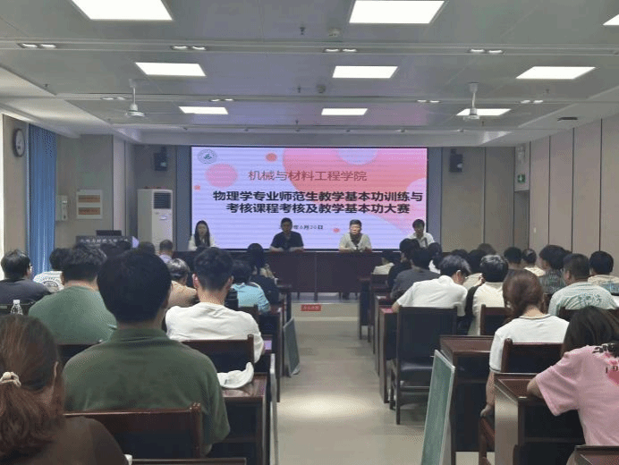 为提升物理学专业师范生教学能力,强化学科核心素养,贯彻落实规范教学的基本理念,6月20日下午,机械与材料工程学院开展物理学专业师范生教学基本功课程考核及教学基本功大赛。院长张运良、学院党总支书记武文斌、物理学专业教师参加本次会议,会议由物理学专业辅导员张汝淼主持。本次比赛面向2021级、2022级物理学专业学生。比赛主要考察参赛选手书写和语言表达能力及教学综合能力,从不同角度考察选手们的教学基本功,旨在以赛促学,...