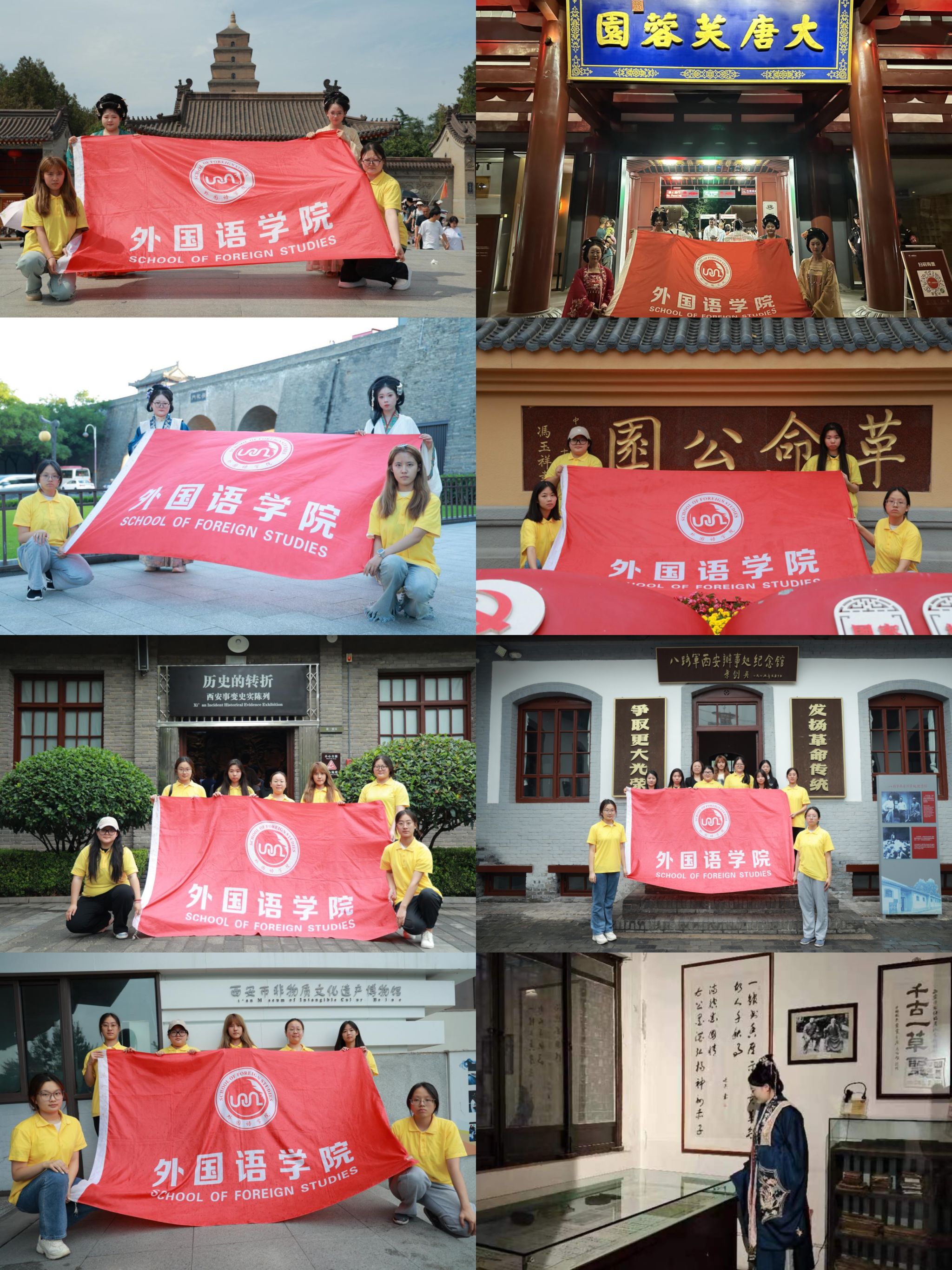 为深入探究传统文化,领略古都魅力,传承并弘扬中华传统文化,外国语学院成立“追溯千年古都 深掘文化魅力”暑期社会实践团队,该团队由辅导员王卓凝负责,成员覆盖英语、日语、翻译三个专业,共有14名成员。自7月6日以来开展了为期16天的暑期社会实践活动。本次社会实践活动依托西安深厚的历史文化底蕴和丰富的文化遗产资源,全体成员陆续走进兵马俑、未央宫、大慈恩寺、大唐芙蓉园、华清宫、大明宫、长安十二时辰、关中书院、于右任先生故居、...