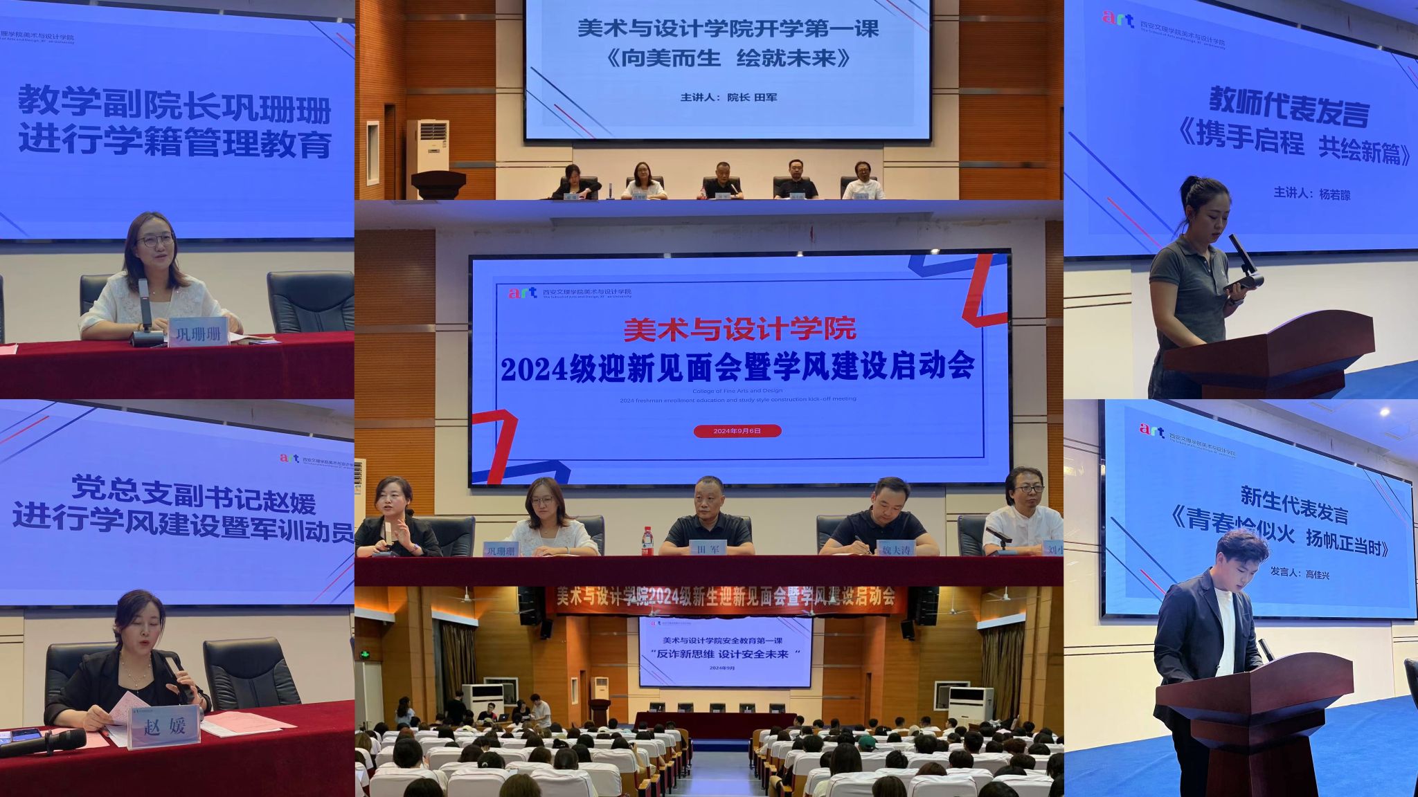 9 月 6 日下午,美术与设计学院在明德楼 A 区报告厅召开 2024 级新生迎新见面会暨本学年学风建设启动会。学院领导班子、各系部主任、党政办、教学办、学工办全体老师、 242 名 2024 级新生以及各年级学生干部参加。会议由党总支副书记赵媛主持。会议伊始,党总支书记魏夫涛致欢迎辞,代表全院师生对新同学的到来表示热烈欢迎。同时介绍了学校概况,帮助新生熟悉校园环境,希望新生迅速投入学习生活。发言环节,设计学 2 班高佳兴作为新生代表发言,...