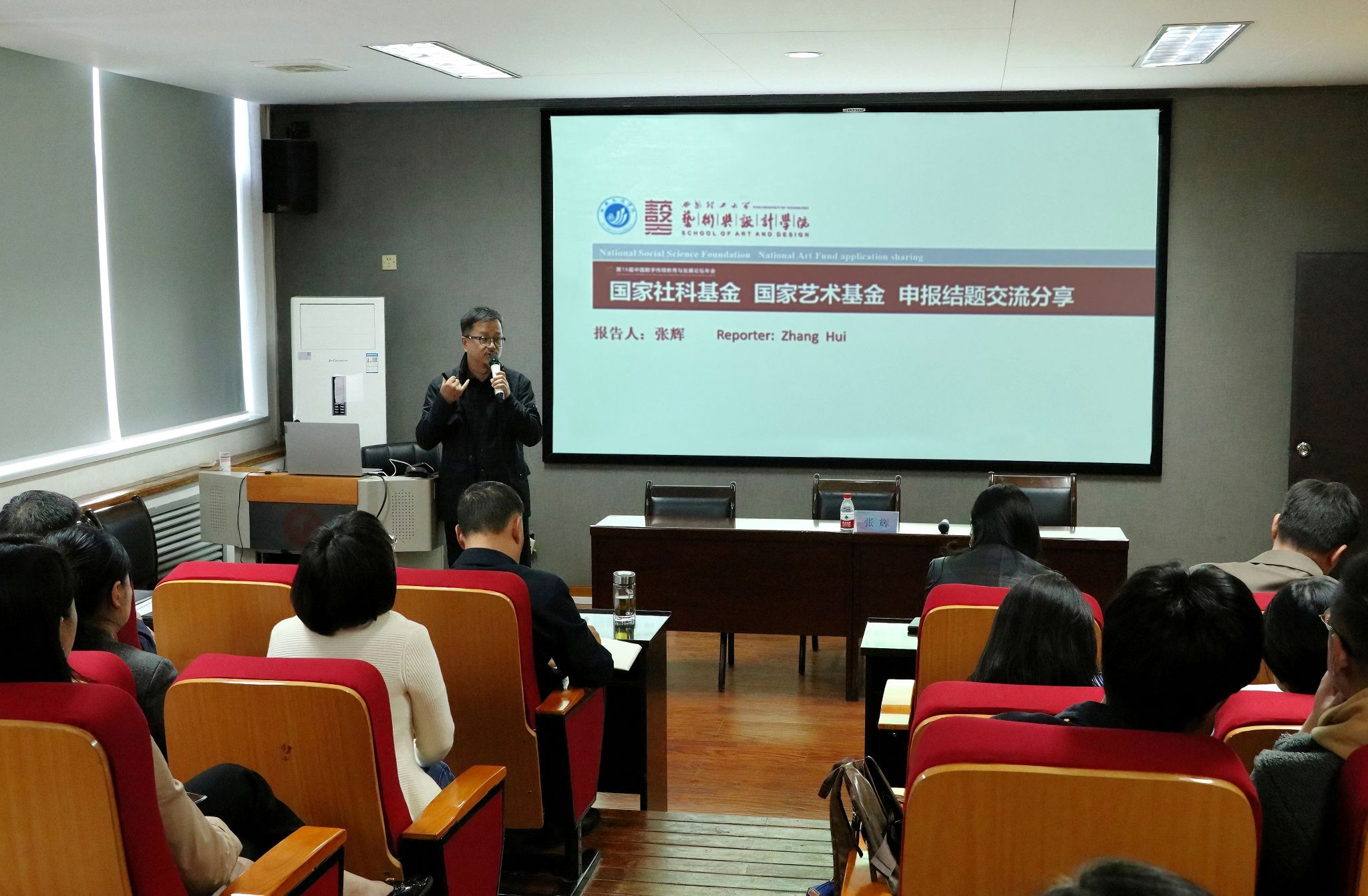 10月23日下午,今年会邀请西安理工大学艺术与设计学院张辉教授做有关于2025年国家社科基金艺术学项目和国家艺术基金项目的申报分享会。本次活动由科研处主办,美术与设计学院承办,文学院、师范学院、美术与设计学院、音乐学院的教授、副教授及青年博士五十余人参会。校长陈刚、校务委员鲍锋出席。分享会由美术与设计学院院长田军主持。张辉从国家社科基金艺术学项目、国家社科基金后期资助项目、国家艺术基金的申报和结题等方面做了分享。...