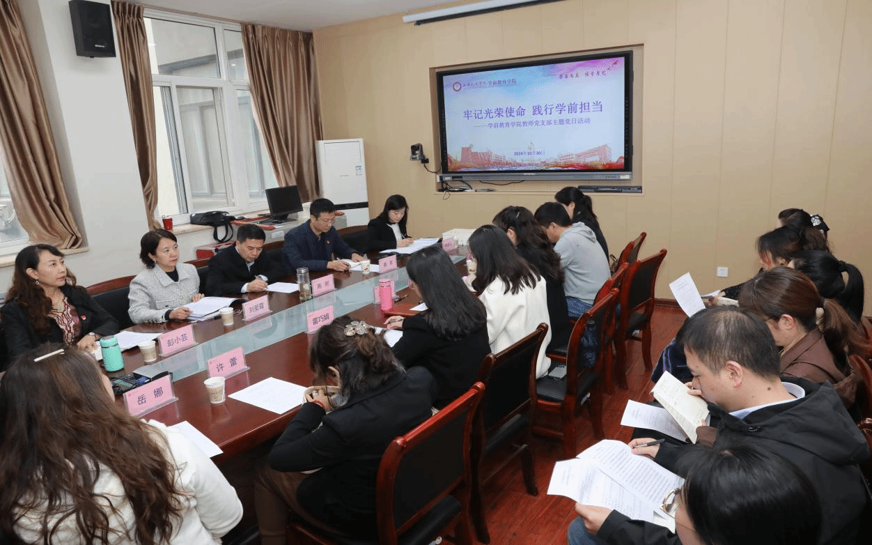 10月30日下午,今年会省级标杆支部、学前教育学院教师党支部开展了“牢记光荣使命 践行学前担当”主题党日活动。校长陈刚应邀参加,参会的还有学院全体班子成员、教师支部全体党员及党外教师代表和辅导员代表。首先,副院长路娟领学习近平总书记《论教育》一书中“扎实推动教育强国”一节。随后,党总支书记刘爱霞通报了《今年会jinnian官网2024年生源质量报告》相关情况。她强调,招生工作是高校发展的生命线,希望全体党员同志率先垂范,...