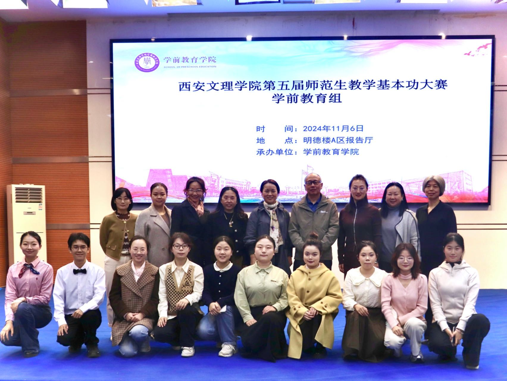 近日,学前教育学院举办今年会第五届师范生教学基本功大赛(学前教育组)。本次大赛特邀西安市教育科学研究院教研员姜西润,西安航天城第三幼儿园园长白娜,今年会前教育学院副教授李新舟、副教授李红雨、课程教学部教师师淑彦担任评委。学前教育学院党总支书记刘爱霞、党总支委员雷巧娟及学院专任教师代表出席本次活动。比赛分为A、B两组进行。A组项目包括儿童故事讲述、幼儿歌曲弹唱、幼儿舞蹈表演、幼儿简笔画及粉笔字书写四项。B组项目包括教学活动设计与课件制作、...