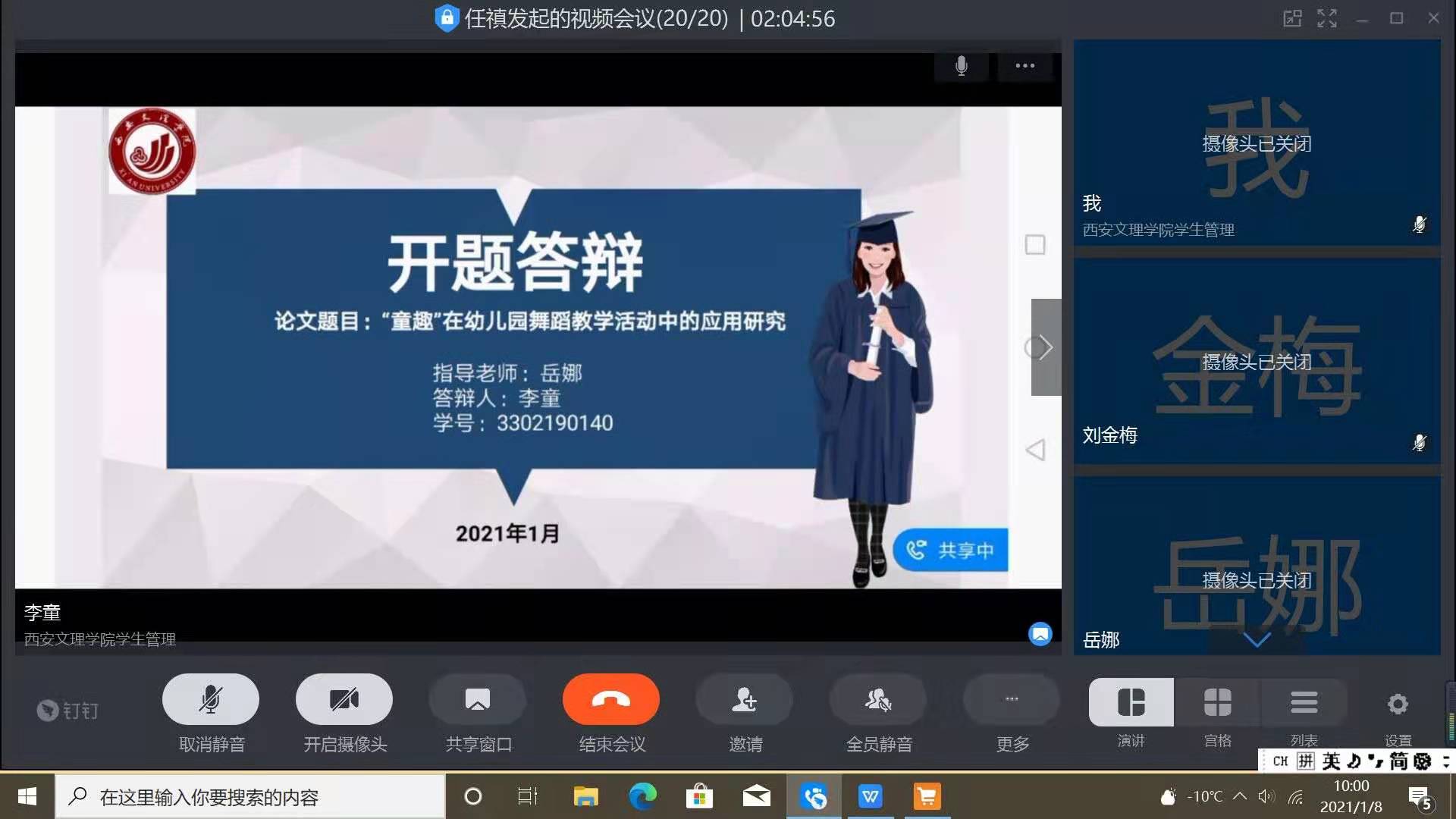 1月8日上午,学前教育学院举行2021届本科毕业论文开题答辩会。按照疫情防控要求,此次活动全程在线上开展,学院全体论文指导教师以及来自西安交通大学幼儿园、西安市第一保育院、西安市灞桥第二幼儿园和西安市第五保...
