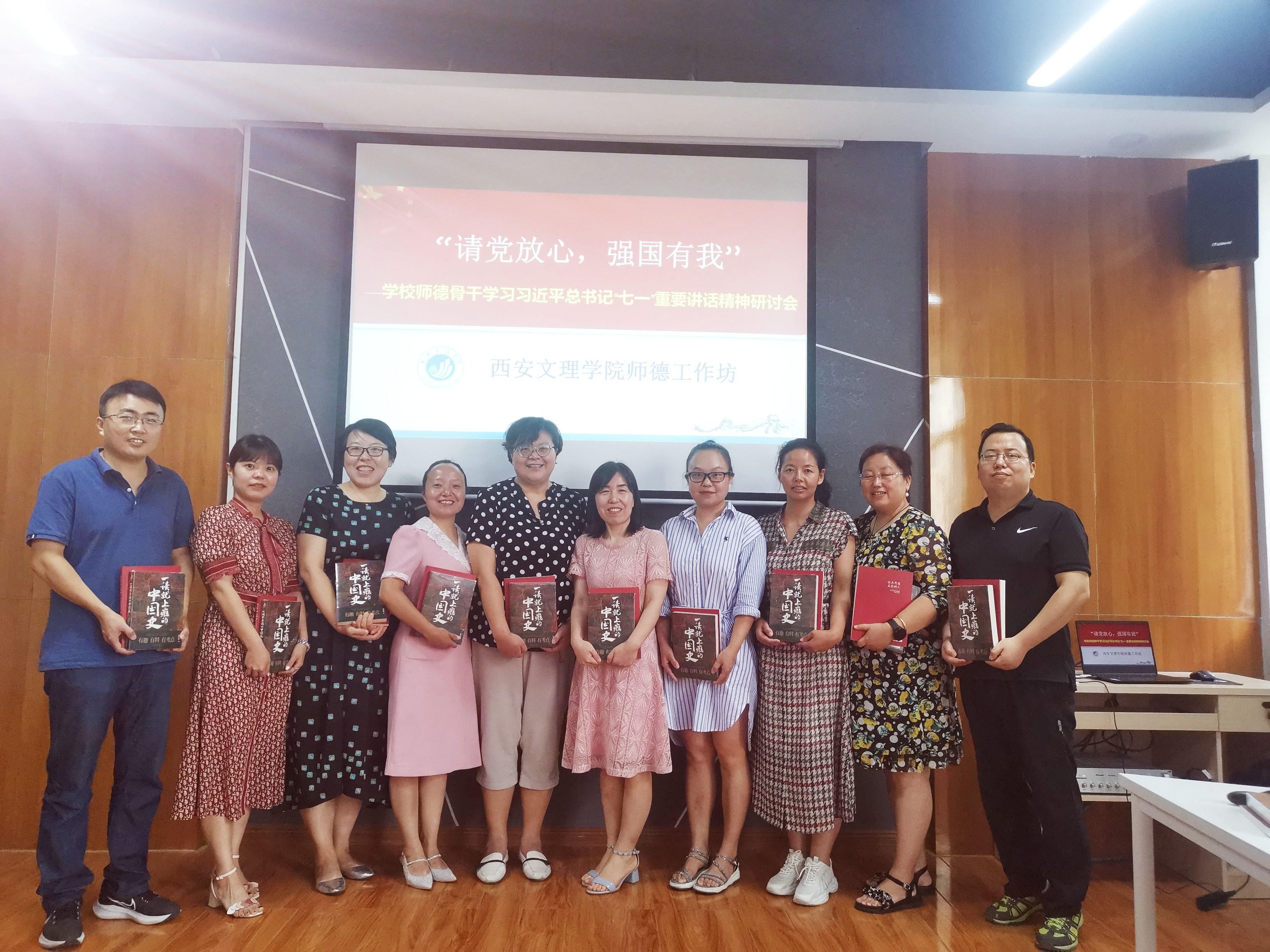 近日,学校“请党放心 强国有我”师德骨干学习习近平总书记“七一”重要讲话精神研讨会在马克思主义学院师德工作坊召开。来自各相关部门、学院的10余名师德骨干参加学习研讨。 师德工作坊主持人舒荣教授为大家做了题...