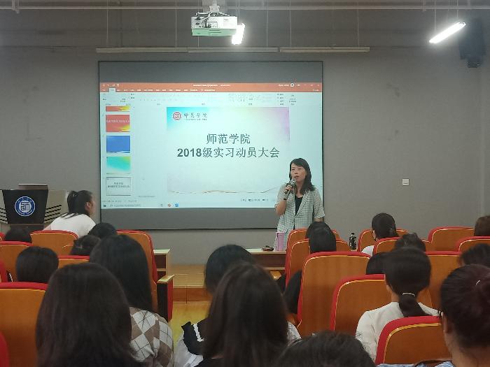 9月3日下午,师范学院在明德楼B0202多功能教室举行小学教育专业2018级学生毕业实习动员大会。师范学院干部李晶、实习指导教师及2018级学生参加了此次动员大会。 会上,小学教育系实践教研室主任何悦安排部署了实习手...
